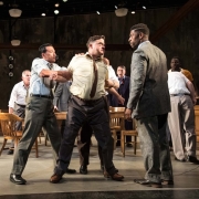 In a small New York City jury room, on “the hottest day of the year,” twelve men debate the fate of a young defendant charged with murdering his father. In form, TWELVE ANGRY MEN: A New Musical, is a courtroom drama; in purpose, it’s a crash course in those passages of the U.S. Constitution that promise defendants a fair trial and the presumption of innocence.